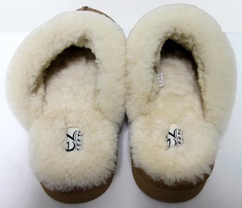 This soft lamb’s wool fleece closed toe scuff is pre-treated for stain and water resistant indoor outdoor wear.
