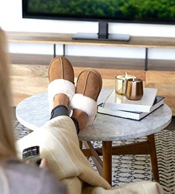 Light and flexible, high traction EVA rubber outsole bottom provides non-slip, anti-skid slipper protection for indoor/outdoor all day comfort whether outside or, as at remote work from home lifestyle fashion footwear