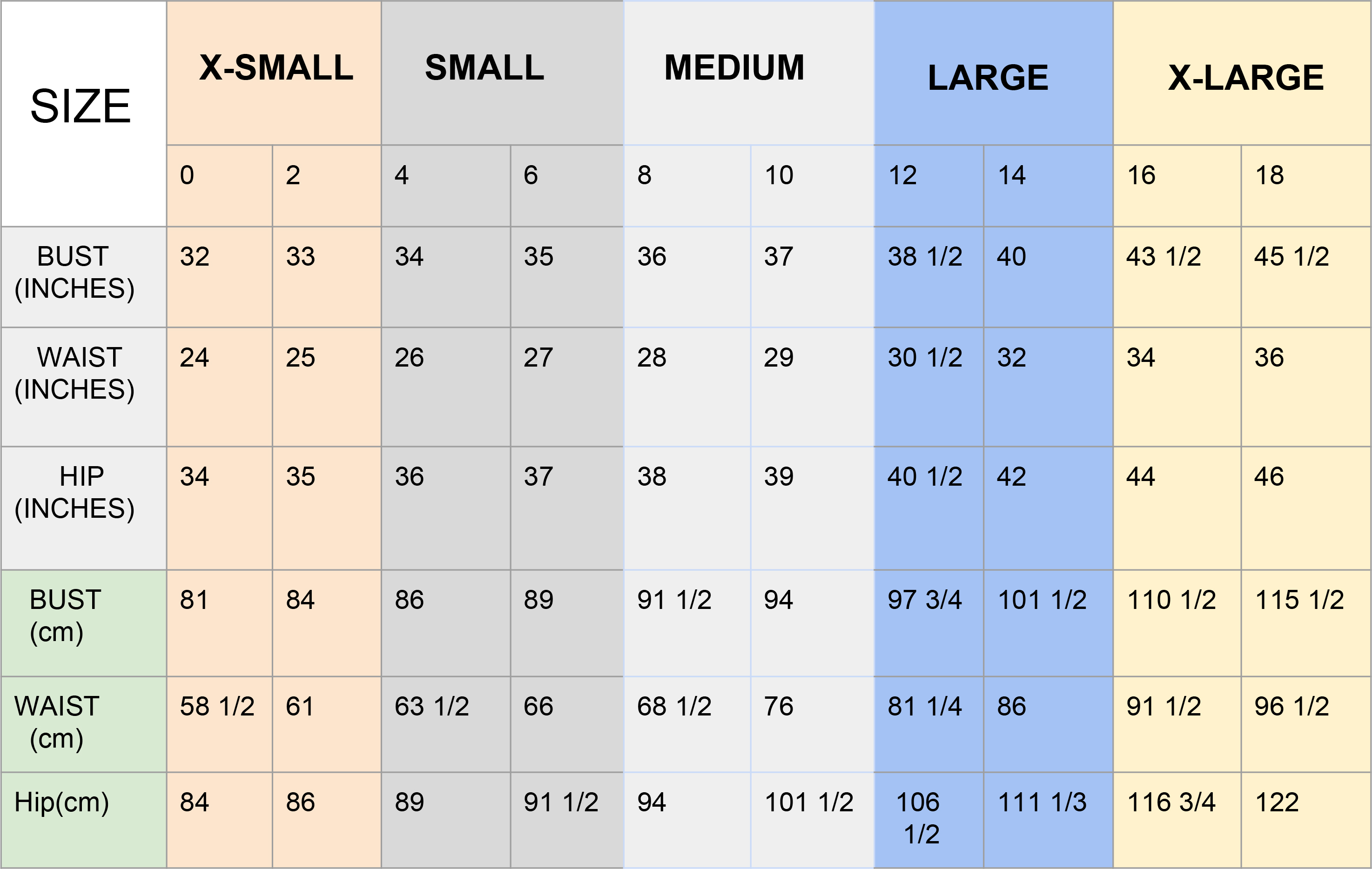 SIZE CHART FOR WOMAN